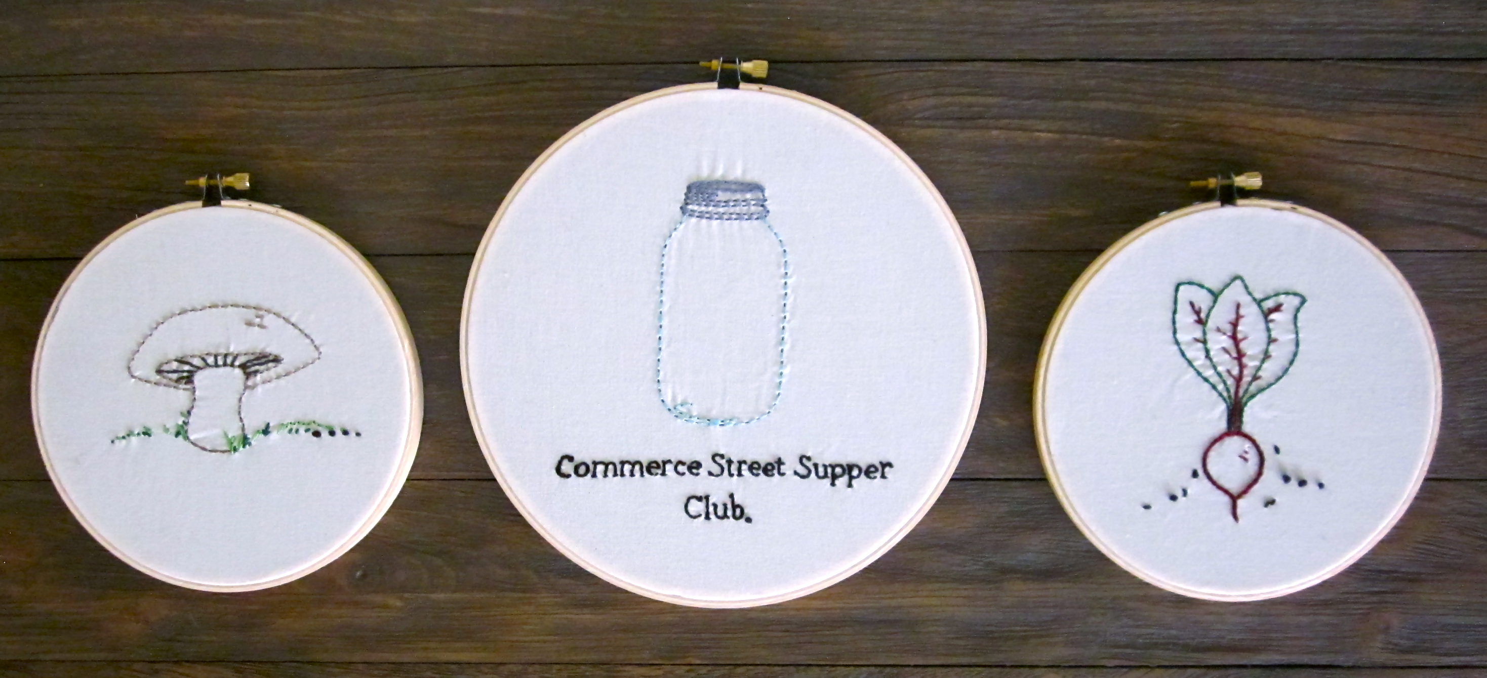 Above, a birthday present for one of the founders of the Commerce Street Supper Club. (If you are in the Austin area and love food of any kind, you need to check them out.) I also did two pieces for someone else, although one is only shown currently, an embroidered apron. It was so nice to be able to create something and give it a home.
